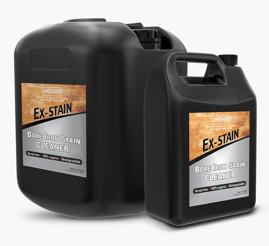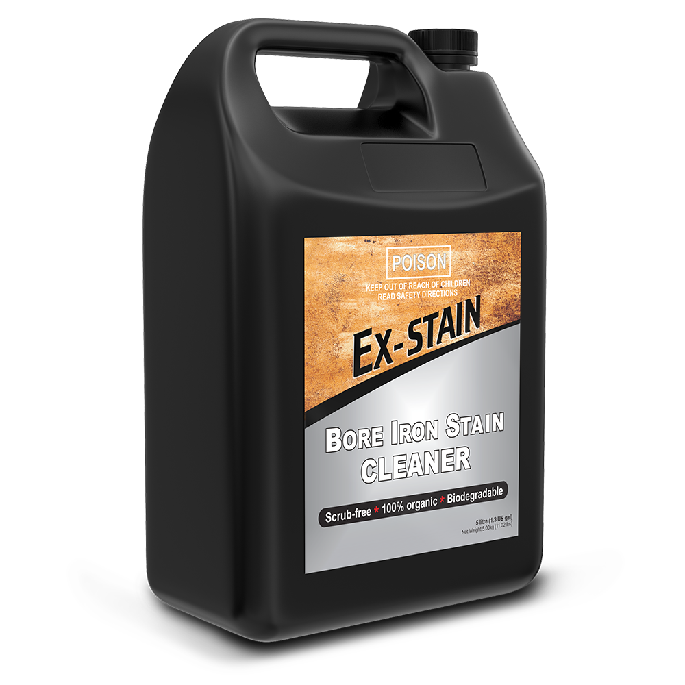 EX-STAIN BORE IRON STAIN ClEANER is a powerful, scrub-free formulation for removing iron and other groundwater stains from hard surfaces such as pathways, walls, and windows.